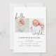 This photo birth announcement template features a modern minimalist design with an edgy handwritten font. Use this template to edit *most* wording, font, font colour, and the background colour to match your style.