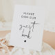 This guest book sign features an edgy handwritten font and modern minimalist design. Easily edit *most* wording to match your needs. This sign makes the perfect addition to your simple contemporary or bohemian baby shower, bridal shower, wedding, retirement or any other event! This table sign features a simple white and black colour combination but all colours are 100% editable to match your style.