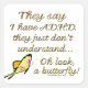 They say I have ADHD, they just don't understand... Oh look, a butterfly! - Attention Deficit Hyperactivity Disorder Humour Saying. The text / font in a gold colour with a yellow butterfly graphic.