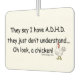 They say I have ADHD, they just don't understand... Oh look, a chicken! - Funny Attention Deficit Hyperactivity Disorder Humour quote / saying.