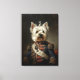 An official oil painting portrait from a West Highland terrier dressed in a Victorian 18th century militairy renaissance uniform like Napoleon