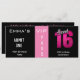 Admission Ticket 16th Birthday Party Pink & Black Invitation