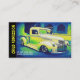 A gorgeous restored low rider vintage truck, transformed from a colour photograph into a textured coloured pencil sketch in shades of blue, green and yellow. Gleaming and perfect - she's just the ticket to advertise any auto related business or service. Use as an admission ticket and give guests and club members a card to hold on to. Both sides are customizeable.