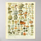 Reprint of famous Adolphe Millot mushroom illustration from 1909 titled 'Champignons'