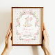 Featuring a whimsical watercolor goose in a party hat, delicate pink ribbons, florals, and soft pastel stripes, this decor sign is perfect for a sweet and silly celebration. The elegant yet playful design is ideal for spring birthdays, garden parties, or any cheerful first birthday gathering.