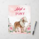 Adopt a pony sign for pony horse equestrian party with pink flowers cute horse on a pink background.