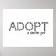 This fun design features the word "Adopt" spelled in black paw prints and below the text reads "a shelter pet". Perfect for animal lovers or animal shelters. Show your support for homeless animals and remind everyone that many, many furry family members are waiting for their forever homes.