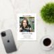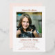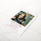 Photo template adoption notification and party invitation template. Rose gold foil colour on the frame around her photo and also used for her name at the top. The flat, 5x7 inch cards are light rose pink colour with black text at the bottom. Sample wording is “Welcome to the family” with party information beneath.
