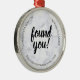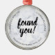 Adoption reunion ornament to commemorate a meeting, reunion or contact. For adoptees who have located, contacted or reunited with biological family members of biological family who want a memento, keepsake or token gift to share with newfound family this ornament declares found you in large black script font with templates that allow you to record the date of reunion or contact and names or other messages. Set on faux white marble. A keepsake for biological mother, father, half-siblings or other extended family member.