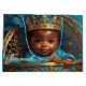 💙 This charming little prince with a cute button nose, rosy cheeks, and curly brown hair is peaking from underneath a regal gold crown adorned with shimmering blue gems. He's nestled in a luxurious gold bassinet crib, complete with a sumptuous baby blue blanket.