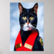 Portrait of a cute and adorable black and white firefighter american bobtail. This is a AI generated art.
