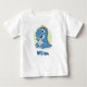 This customised, charming kids' t-shirt features a cartoon baby blue dinosaur with big, expressive eyes and a joyful smile.