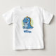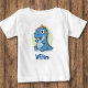 This customised, charming kids' t-shirt features a cartoon baby blue dinosaur with big, expressive eyes and a joyful smile.