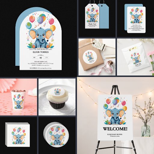 Celebrate your little one with this cute baby shower invitation featuring a cheerful blue baby elephant surrounded by colourful balloons and confetti. Perfect for a gender-neutral, jungle, or safari-themed baby shower! If you need any other matching product or customisation, kindly message via Zazzle.