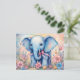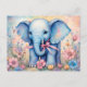 Adorable Baby Elephant In a Pastel Garden Postcard