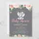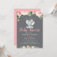 Celebrate the mother-to-be with this darling set of watercolor pink blush blooms and a cute baby elephant illustration. The pink accents on the back and front text brings out the lovely theme perfect for a baby girl.