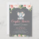 Celebrate the parents-to-be with this darling set of watercolor pink blush blooms and a cute baby elephant illustration. The pink accents on the back and front text brings out the lovely theme perfect for a baby girl.