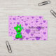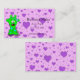 She's so cute! This adorable baby monster is green with blue spots and a bow. On a purple hearts background