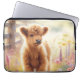 Adorable Baby Highland Cow In Flower Field Laptop Sleeve