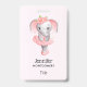 A name tag with an adorable illustration. A grey girly elephant with a pink tutu and flowers dancing ballet, standing on her tippy toes.