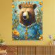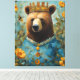 Adorable Bear in a Crown With Flowers and Bees Canvas Print