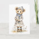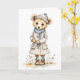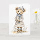 Adorable Bear in Coat Hat Scarf Boots Daisy Blank Card