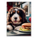 An adorable Bernerdoodle at the diner with a cheeseburger it has ordered AI generated art Blank inside All Occasions Greeting Card