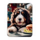 An adorable Bernerdoodle at the diner with a cheeseburger it has ordered AI generated art
