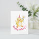 This sweet little chick wearing a party hat and holding a daisy adds charm to any birthday celebration. Perfect for kids and farm themes.