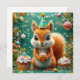 Charming squirrel wearing a festive party hat, surrounded by vibrant decorations and colourful cupcakes in a playful, cheerful setting.