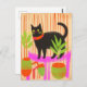 An adorable black cat on a wonky pink table with houseplants AI generated art