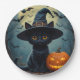 Adorable Black Cat Wearing Witch Hat Paper Plate