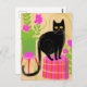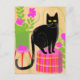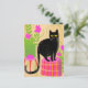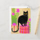 An adorable black cat on a pink plaid table with houseplants AI generated art