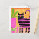 Adorable Black Cat With Pink Stripes Postcard