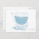 Adorable Blue Baby Boy Carriage Retro Baby Shower Invitation Postcard