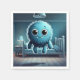This design features a cute and fluffy blue creature with big round eyes, glowing slightly under a soft night lamp. The creature sits playfully on the edge of a bed, bringing a sense of comfort and whimsy to any room. Perfect for anyone who loves adorable, friendly monster designs, making it an excellent addition to home décor or fun apparel.