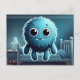 This design features a cute and fluffy blue creature with big round eyes, glowing slightly under a soft night lamp. The creature sits playfully on the edge of a bed, bringing a sense of comfort and whimsy to any room. Perfect for anyone who loves adorable, friendly monster designs, making it an excellent addition to home décor or fun apparel.