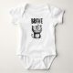 Dress your little one in courage and cuteness with this adorable "Brave" cat bodysuit! Featuring a charming black-and-white illustration of a wide-eyed, brave kitty, this bodysuit is perfect for babies who are ready to take on the world. Made from soft, high-quality cotton, it ensures comfort and durability for your little adventurer. This bodysuit makes a thoughtful and inspiring gift for new parents or anyone welcoming a new bundle of joy.