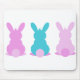 Cute little bunnies in pastel colours, pink, purple, blue great for a cheerful desk decor. Easter bunny mouse pad can also be a great holiday gift for kids.