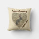 This adorable throw pillow features a nature photo that captures a cute wild desert bunny sitting inside a large heart. The large heart shape surrounds the wild animal and is accompanied by the animal pun "Somebunny loves me" which can quickly be customised if you desire. The back of this pillow features a solid light brown/peach background allowing for plenty of room if you wish to add text or photos.