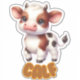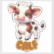 This large sticker features an endearing, cartoon-style calf designed for a nursery setting. The calf has a cute and gentle expression with big, expressive eyes. Its body is white with brown patches, and it has a pink nose and small black horns. The calf stands on all fours with a slight tilt to its head, adding to its charm. Below the calf, the word "CALF" is written in playful, rounded letters, enhancing the sticker's suitability for a child's room.