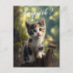 This design features an adorable little calico kitten sitting on a log in nature being super cute with her green pleading eyes! The background is a light green with trees and the kitten has a reddish brown coat with white markings. This would be a great gift for any cat lady, kitten lover, or anyone who just wants something sweet and innocent to look at.