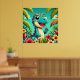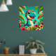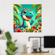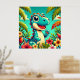 Adorable Cartoon Dinosaur Amidst Vibrant Tropical Poster