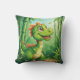 Adorable Cartoon Dinosaur in Lush Green Jungle Cushion