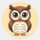 Adorable Cartoon Owl With Big Eyes Classic Round Sticker