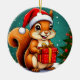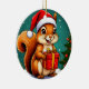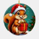 cheerful squirrel dressed in a Santa hat, holding a wrapped present. Perfect for seasonal greetings, Christmas themes, and festive decor designs.