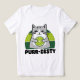 An adorable grey cat holding a green lime slice with the phrase "Purr-Zesty" for cat lovers and lime lovers.