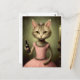 Adorable Cat in Pink with Champagne Bottle Postcard
