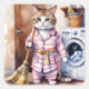 Bring joy to your day with this charming design featuring a cute cat in pyjamas tackling the laundry!