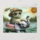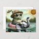 Adorable Cat on an Elephant at the Lake Fish Jump Postcard